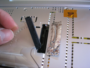 アルミテープを剥がし、キーボードコネクタを外す。
