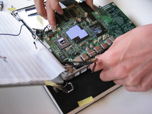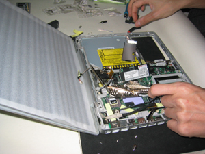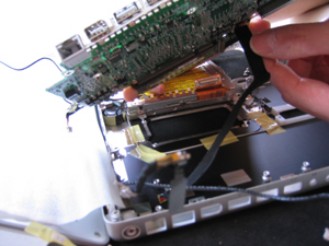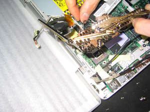 裏側の液晶からのケーブルをコネクタから外す。