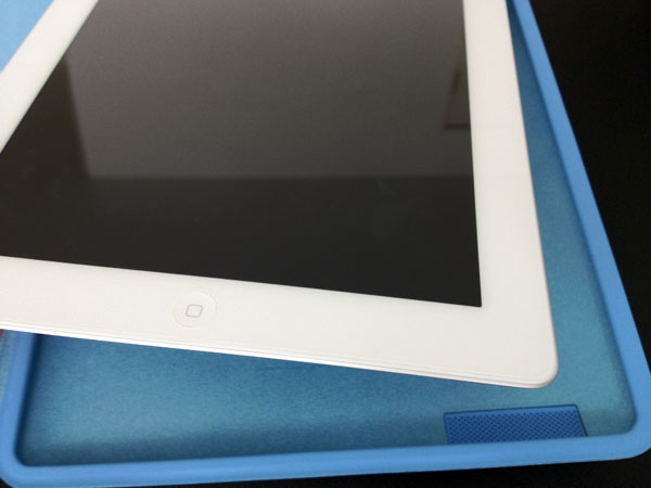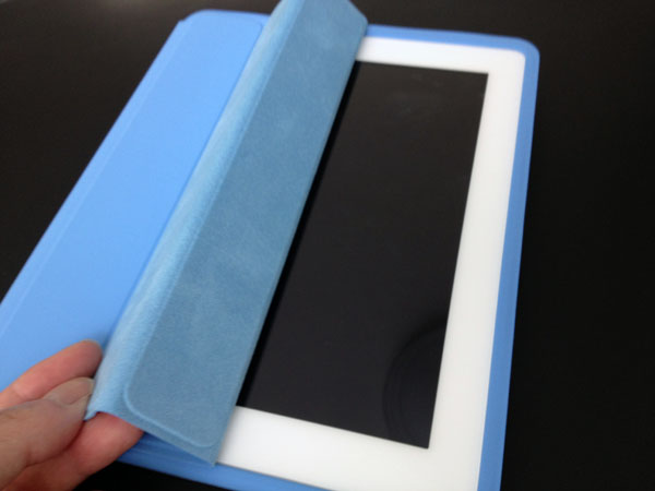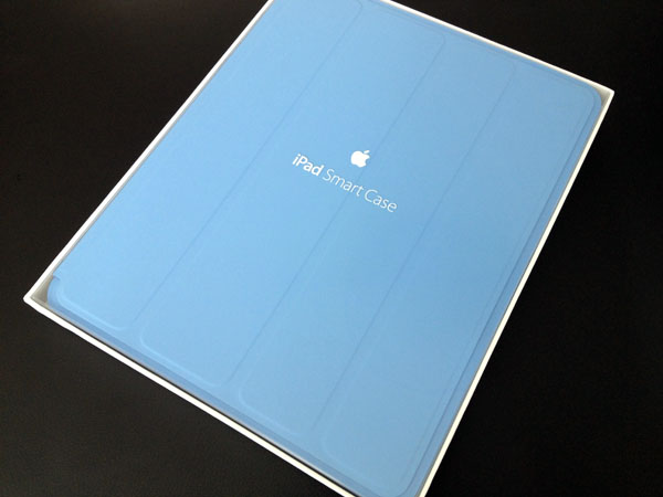 iPadのスクリーンとアルミニウム製の背面の両方をカバーする、スリムで頑丈なiPad Smart Case、そのコンセプトカラーのブルー色か届いた。