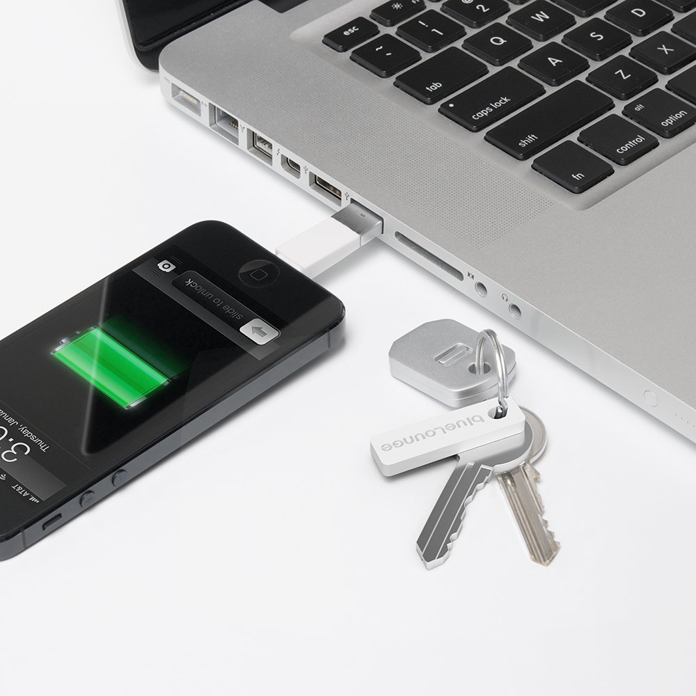 Kiiには、blueloungeのロゴがデザインされたゴム製のラベルと、鍵とKiiを一緒にまとめるリングが付属している。iPhone /iPod /iPad 用の長〜いケーブルを持ち歩くことなく、シンプルなKiiは、オススメのアイテムである。