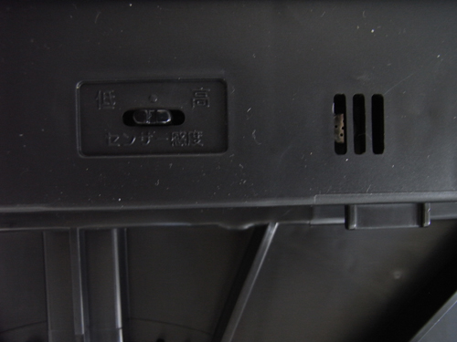 これも空気清浄機の重要なパーツ、空気の汚れを感知するセンサーである。センサーの感度切り替えが可能となっている。