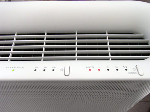 Air Purifierの操作部分はシンプル。一般使用では、AUTOモードで使用するのがオススメ。ファンが回っていないのかと思うくらい動作音が静かだが、室内の空気が汚れてくると勢い良くファンが回転、動作音もかなり大きくなる。しかし、この動作音が「空気を清浄しているんだなぁ〜」と感じるのである。