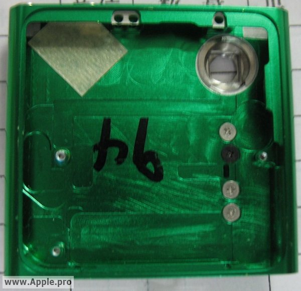 筐体パーツは、現行モデル iPod nano と基本的なサイズは変わらなさそうだが、背面にあけられた穴は、疑うことなくカメラのレンズ用だろう。