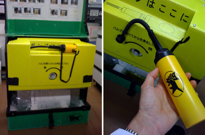 今回、Mac Proの修理を依頼した。ヤマト運輸が故障製品を引き取りにきた時、用意したのが Necofit という梱包材である。 この Necofit は、Mac Proがスッポリ入るのでかなり大きめの箱。修理品をサービスセンターと往復している箱なので、外観はかなり傷んでいる。箱を開けてみるとこれがアナログ的なのだが、工夫された箱なのだ。 箱を開いてみると、中には手動式のクロネコのイラストがプリントされたポンプが入っていた。このポンプを使って内部の緩衝剤を膨らませてMac Proを固定するのだ。取り出すにはエアーバルブをリリースして、取り出せる仕組みになっているリサイクル可能なすぐれた専用梱包箱である。 箱に貼られたステッカーを見ると、「衝撃センサー内蔵」と書かれているのでどこかに装着されているようだ。バラしをすればわかるのだが、使い捨ての梱包材ではなさそうなのでバラさず、詳細はわからない。 本来、この Necofit は、ヤマト運輸のドライバーが、修理品の梱包、開封作業をするので、詳しくこの箱を観察できる機会はない。今回「ドラーバーさんへのお願い」と書かれているのにも係らずそのまま置いてかえってしまった。ドラーバーに連絡して、引き取りにくるまでじっくりと観察させてもらったので、記事にすることができた。 大切な製品を預けるのだから、ヤマト運輸のドライバーは、しっかり教育訓練を受けるべきだと思う。 新着アイテム多数入荷 お買い上げ合計金額5,000円(税込)が以上で送料無料。Apple Store 最新MacBook Proは114,800円から。Appleローンなら月々3,600円より。Apple Store