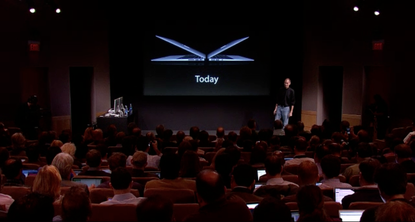 Steve が、スペシャルイベントで新しいデザインのMacBook Airを発表した。