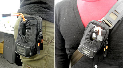 PORTER iPod/iPhone ポーチには、背面部分にマジックテープストラップがあるので、簡単にベルトやリュックサックのショルダーに取り付けることが出来る。このストラップがとても便利なのである。