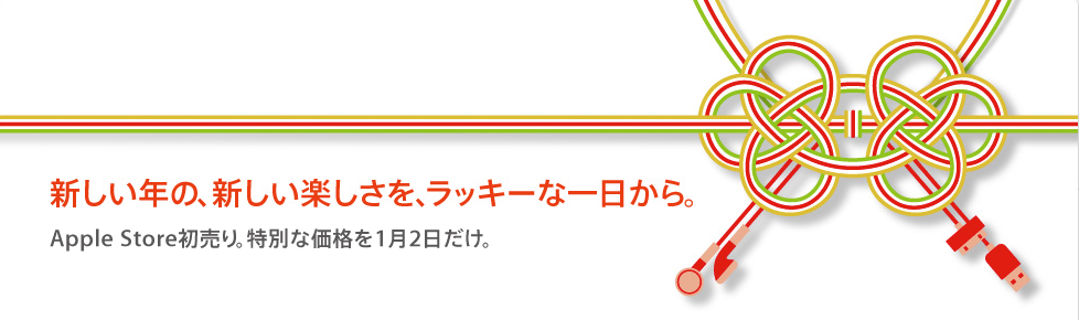 新年1月2日、Apple Storeは、毎年恒例の一日限りの初売りを開催する。 全国のApple Storeでは、1月2日のみ午前8時に開店、恒例のLucky Bag(税込価格30,000円)が販売される。また、様々なApple製品やアクセサリを、特別価格で用意される。1月3日からは、お子様と一緒にMacを学べる新春キッズワークショップもスタートする。
